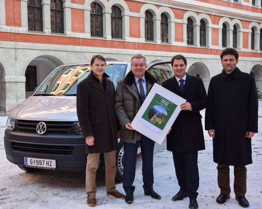 Graz (19. Jänner 2017).- „Mikro-ÖV“ (Mikro-Öffentlicher-Verkehr) beschreibt unterschiedliche Nahmobilitätsangebote für den Personenverkehr, vorrangig auf kommunaler Ebene. In ländlichen Räumen und peripheren Gebieten ist die Abhängigkeit vom privaten Pkw oft sehr groß. Dies stellt insbesondere Personen ohne Zugang zu einem Pkw vor enorme Herausforderungen. „Mikro-ÖV-Angebote im Sinne unserer steiermarkweiten Strategie sind bedarfsorientiert, flexibel und in ihrer Größenordnung im Vergleich zum konventionellen Linienverkehr eher klein gehalten - ‚mikro‘ eben, aber für die Betroffenen umso wichtiger“, betonten der für die steirischen Regionen zuständige LH-Stv. Michael Schickhofer und Verkehrslandesrat Anton Lang anlässlich der heute (19.1.2017) in Graz präsentierten „Mikro-ÖV"-Strategie Steiermark.