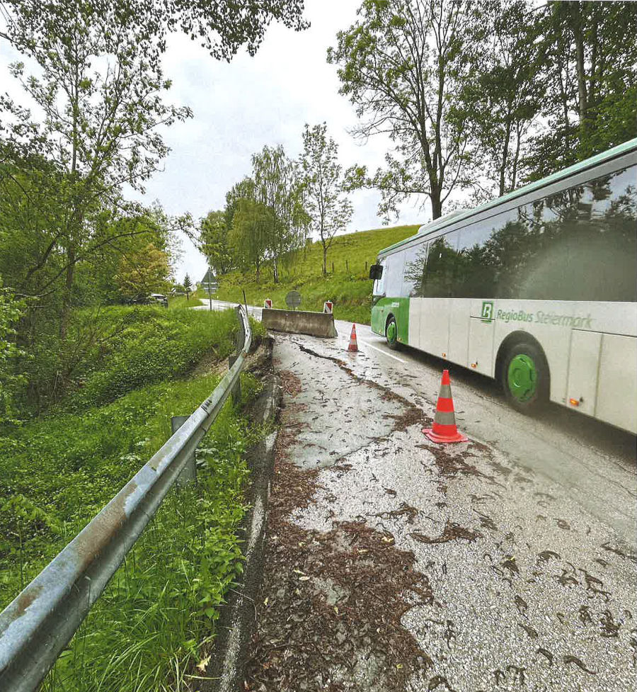 Graz (3. Oktober 2025).- Auf der L 713 (Kaiseraustraße) kam es im Zuge von Unwetterereignissen im Herbst 2024 zwischen der Triebener Ortschaft Dietmannsdorf und der Marktgemeinde Admont auf einer Länge von rund 50 Metern zu einer talseitigen Rutschung, weshalb der Abschnitt aktuell nur einspurig befahrbar ist. „Nach der Ausarbeitung eines Sanierungskonzeptes starten nun ab kommenden Montag, den 6. Oktober, die Arbeiten, die für voraussichtlich drei Wochen eine Totalsperre notwendig machen. Die Behebung dieser Rutschung kommt auf 220.000 Euro”, informiert Verkehrslandesrätin Claudia Holzer.