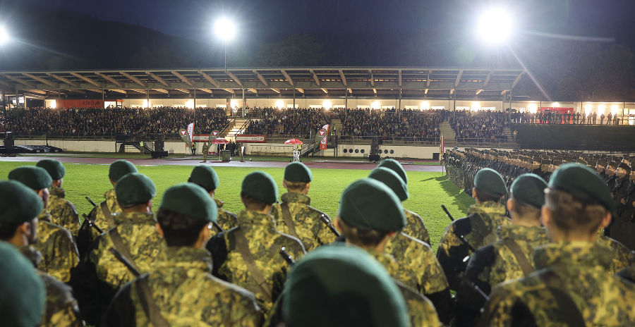 Feierliche Angelobung mit LH Mario Kunasek und Militärkommandant Heinz Zöllner im ASKÖ-Stadion in Graz.