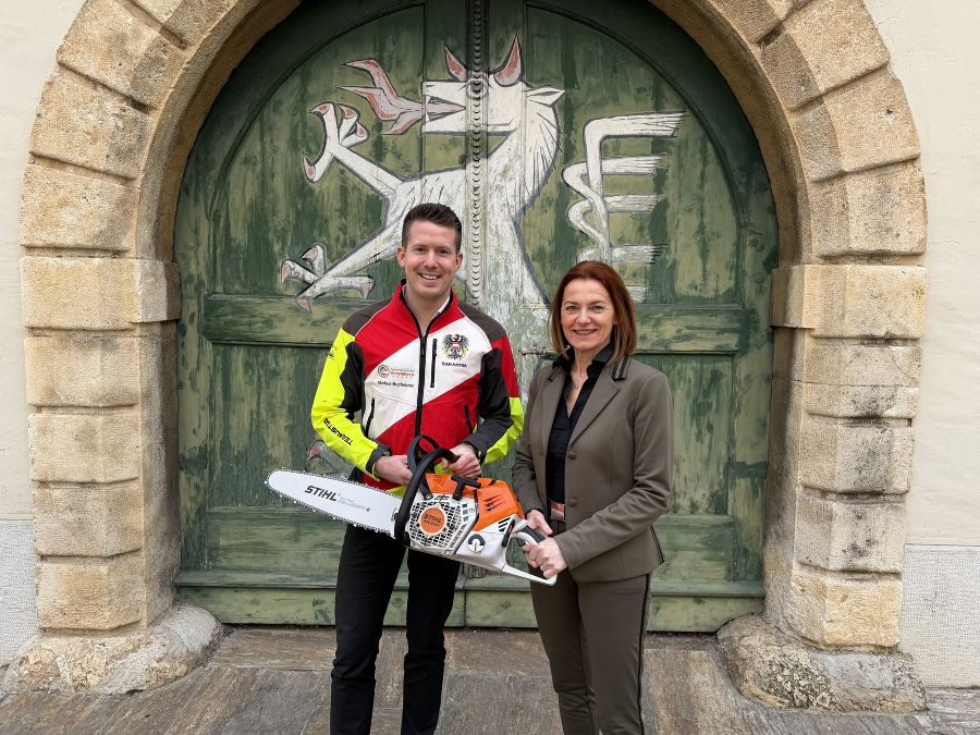 Der engagierte Forstsportler zählt seit Jahren zur Weltspitze. Buchebner ist bereits vierfacher Weltmeister und hält zudem den aktuellen Weltrekord im Kettenwechseln mit 7,88 Sekunden. Bei der Weltmeisterschaft misst er sich mit Athletinnen und Athleten aus über 25 Nationen in Bewerben, bei denen Präzision, Schnelligkeit und höchste technische Fertigkeit gefragt sind.