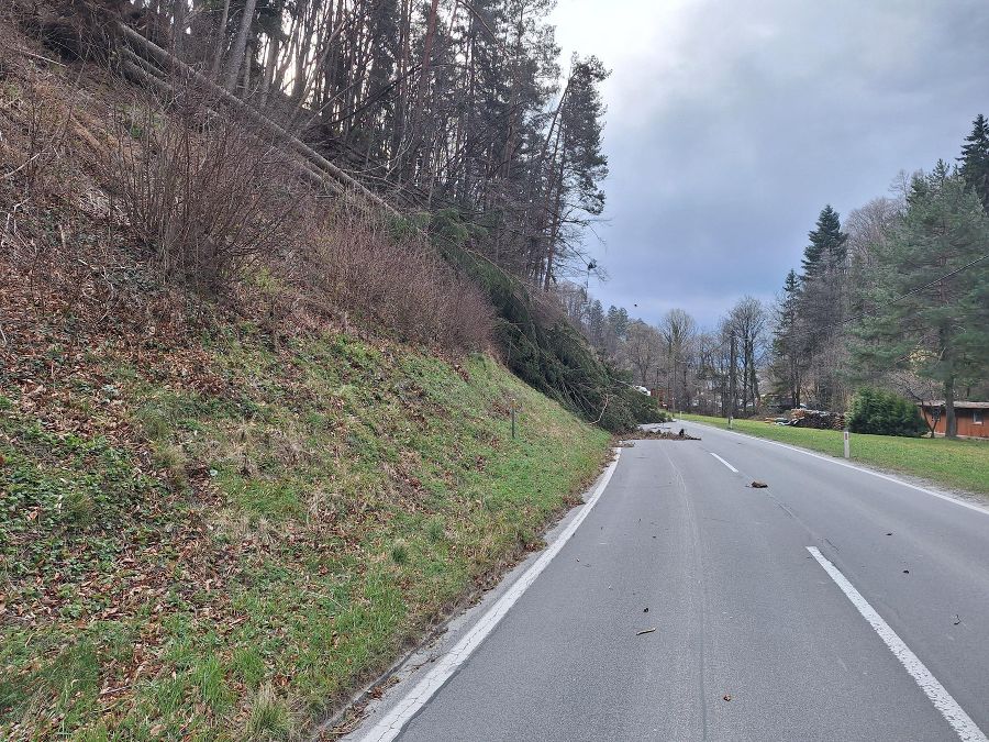 Windwurf und Steinschläge machen Straße unpassierbar – Land Steiermark arbeitet mit Hochdruck an Sicherung und rascher Verkehrsfreigabe